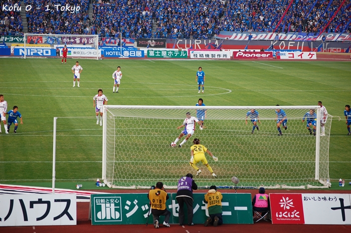 降格の決まった甲府のモチベーションは思った以上に高く、後半途中まではペースを掴めないまま経過し、ノブオが裏を取り始めてからやっと東京の流れに。終了間際まで続いた反撃も凌ぎ、もがきながらたぐり寄せた1-0で'07シーズンが勝利で終幕。